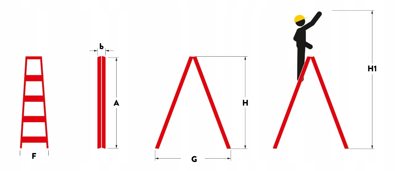 Choosing the right ladder height is important to ensure the comfort and safety of working on a ladder. Below we answer what is worth paying attention to. Before choosing a suitable ladder, measure the highest point you want to reach from the ladder with a measure, this will allow you to determine the highest working height required. After measuring, compare with parameter H1 (working height). To ensure adequate comfort, choose a ladder where H1 (working height of the ladder) is greater than or equal to the height you want to reach; Choosing a ladder with a lower working height may be a misplaced purchase. Follow the rule - it's better to choose a ladder slightly larger than too small. It is also worth checking if the ladder will fit into the storage box, check the H and b parameters and compare them with the storage space.