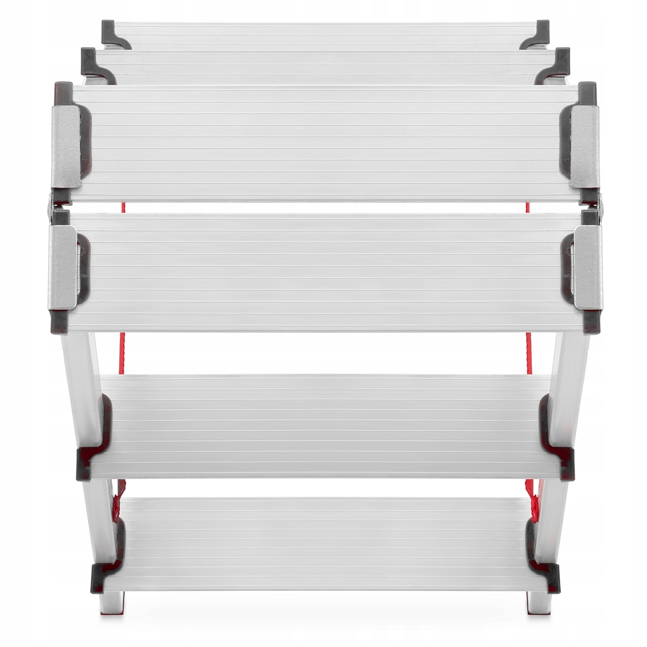4. A durable and strong hinge creates a ladder folding system that allows it to be folded to a small size (flat), which greatly facilitates transport and storage. The system works perfectly in practice, making the ladder fold to small dimensions (flat). Thanks to this, it can be easily transported or stored in small rooms, cabinets, crevices, etc. places. The hinges are durable - made of galvanized steel.