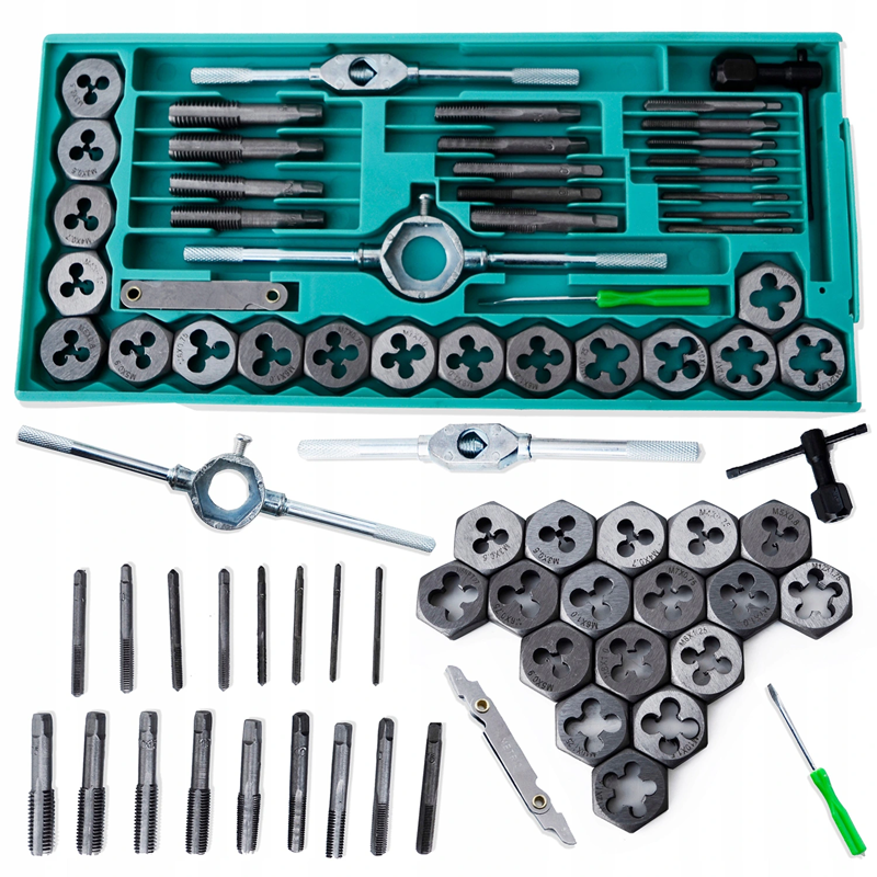 The dies and taps are made of high quality material.