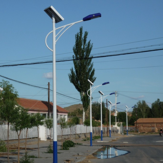 LED lamp16pcs Bridgelux LEDs, 12V20W28lux on the floorColor temperature: 6500KPole4m high, steel, with galvanizing treatment, Solar panel17.5V60W, poly/monocrystallineConversion efficiency: 17%Controller12V10A solar charge controllerBattery12V65AH, deep recycles gel storage batteryWorking time10hr/d, 6H full-energy mode +4H energy-saving mode,3 continued overcast & raining days.