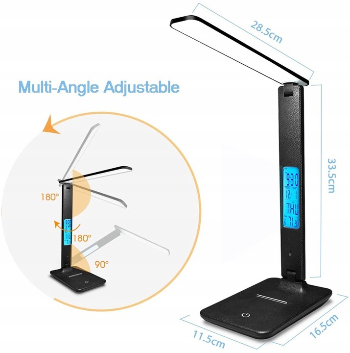 LED Desk Lamp 10W QI Wireless Charging With Calendar Temperature Alarm Clock Eye Protection Read Light Table Lamp